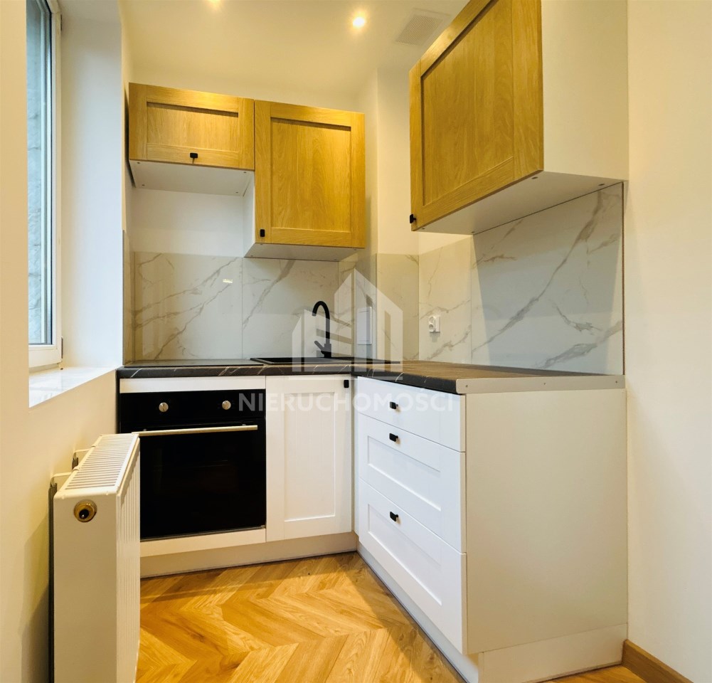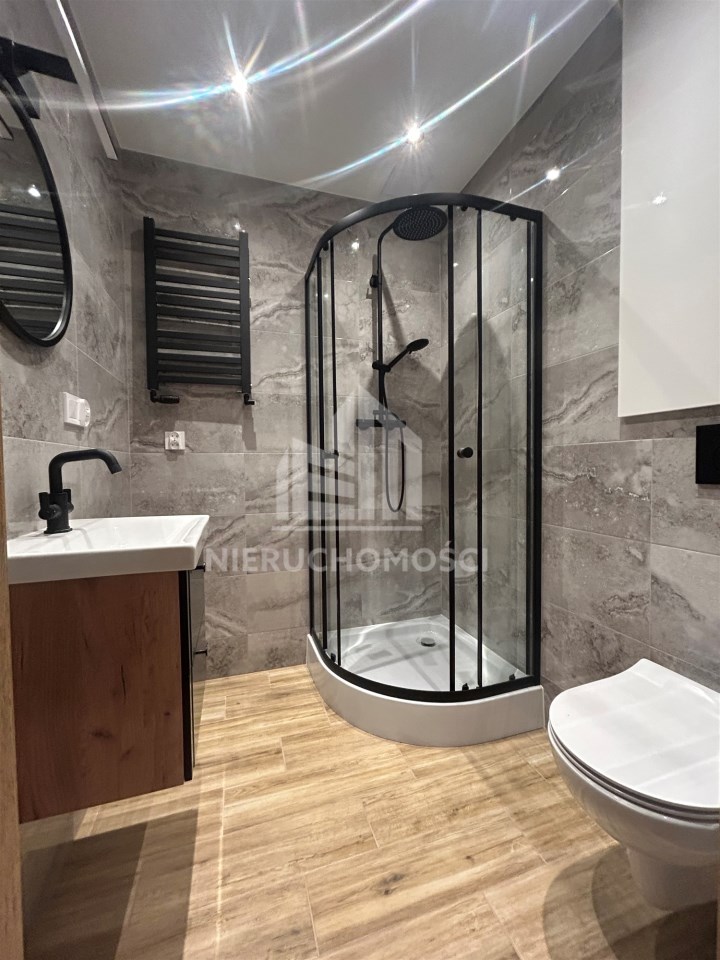 Mieszkanie zostało przygotowane w taki sposób, by nowy właściciel mógł od razu się wprowadzić, nie tracąc czasu na remont. Instalacja gazowa, hydrauliczna i elektryczna zostały w całości wymienione - zamontowano nową skrzynkę bezpiecznikową. Wydzielono łazienkę, w której zamontowano wygodną kabinę prysznicową, toaletę, umywalkę oraz zainstalowano nowy piec gazowy i przygotowano miejsce na pralkę. W kuchni zamontowano sprzęty oraz szafki w zabudowie. W salonie znajduję się część jadalniana. Ściany gładzone, malowane. Na podłogach nowe panele wysokiej klasy ścieralności, w łazience gres. W sypialni miejsce na dużą szafę w zabudowie. Nowe drzwi wewnętrzne i zewnętrzne antywłamaniowe. Okna PCV. Niewątpliwym atutem jest przynależna piwnica.