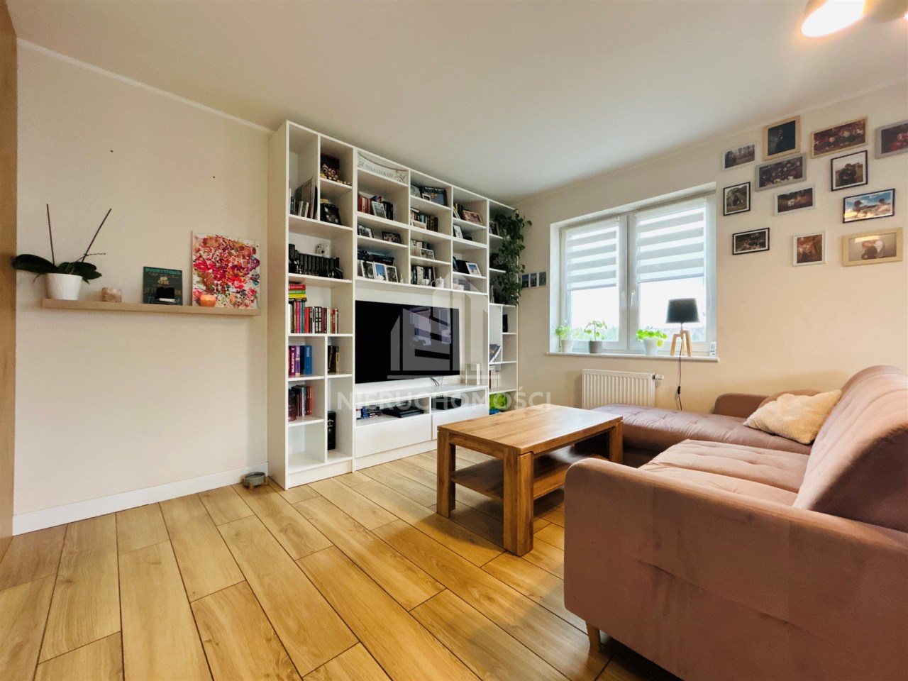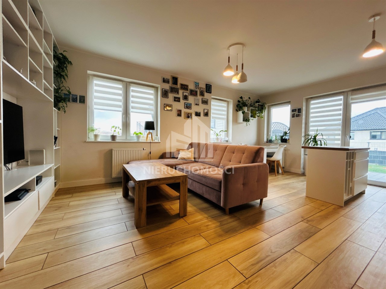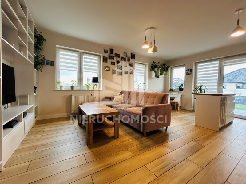 Mieszkanie składa się z salonu z aneksem kuchennym i wyjściem do dużego ogródka (ok. 60 m2), 2 sypialni, łazienki oraz przedpokoju. Kuchnia z dużą wyspą została wyposażona w meble i sprzęty w zabudowie stałej. W łazience znajduje się duża, wygodna kabina prysznicowa, szafka z umywalką, WC, a także miejsce na pralkę i suszarkę. W przedpokoju zamontowano bardzo dużą szafę z drzwiami przesuwnymi, dającą wiele miejsca do przechowywania. Funkcjonalny rozkład mieszkania daje świetne możliwości aranżacyjne. Mieszkanie dzięki usytuowaniu względem stron świata jest bardzo jasne i ciepłe.